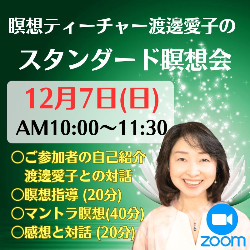 渡邊愛子の各種Zoom瞑想会では瞑想指導歴19年の経験をベースに、初心者の方から熟練者の方まで、各自の状況やニーズに合わせながら瞑想の指導やご質問に答えさせて頂きます。